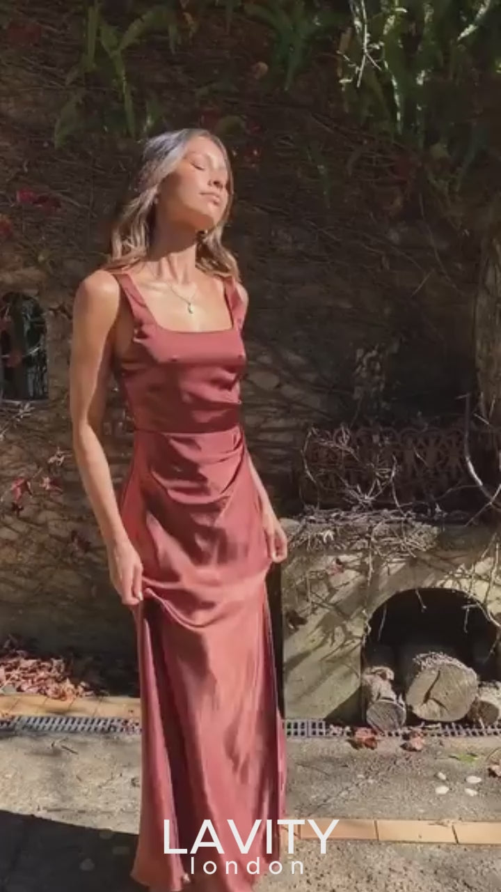 Laureen | Rust Satin Side-Gathered Maxi Dress